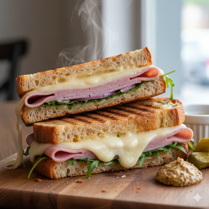 Un pain chaud et croustillant garni de jambon délicat et de fromage fondant pour un moment 100 % gourmand.