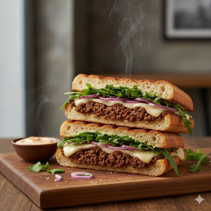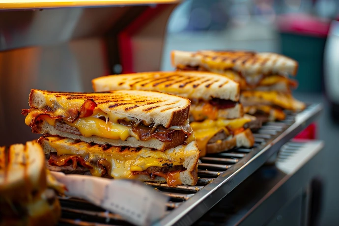 Quand la viande grillée rencontre le fromage ultra-fondant, ça donne notre Panini Viande Signature. Un pain croustillant à l'extérieur, un cœur tendre et juteux à l'intérieur. Le plaisir chaud et rapide qui ne fait aucun compromis sur le goût !
