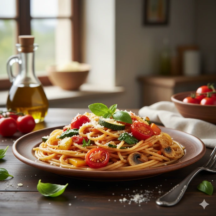 La fraîcheur des légumes du soleil sur des pâtes ! Tomates, courgettes, poivrons... une sauce légère et savoureuse pour un repas équilibré et plein de couleurs. Le plaisir végétarien qui met tout le monde d'accord !